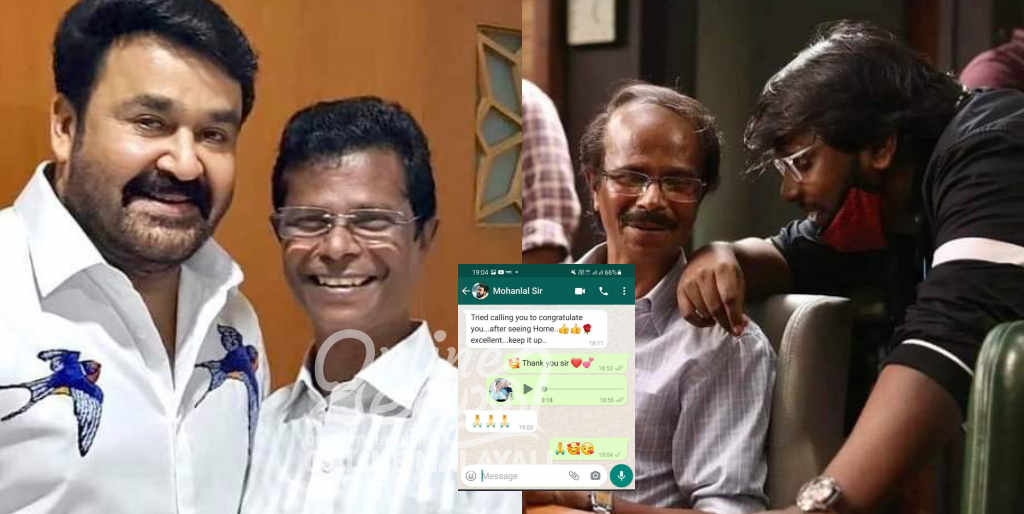 ഹോം കണ്ടു എന്നും വിളിച്ചിട്ട് കിട്ടിയില്ല എന്നും മികച്ച സിനിമയാണ് എന്നുമായിരുന്നു മോഹൻലാൽ മെസേജിൽ കൂടി അറിയിച്ചത്. അതിന്റെ സ്ക്രീൻ ഷോട്ടും താരം പങ്കു വെച്ചിട്ടുണ്ട്.