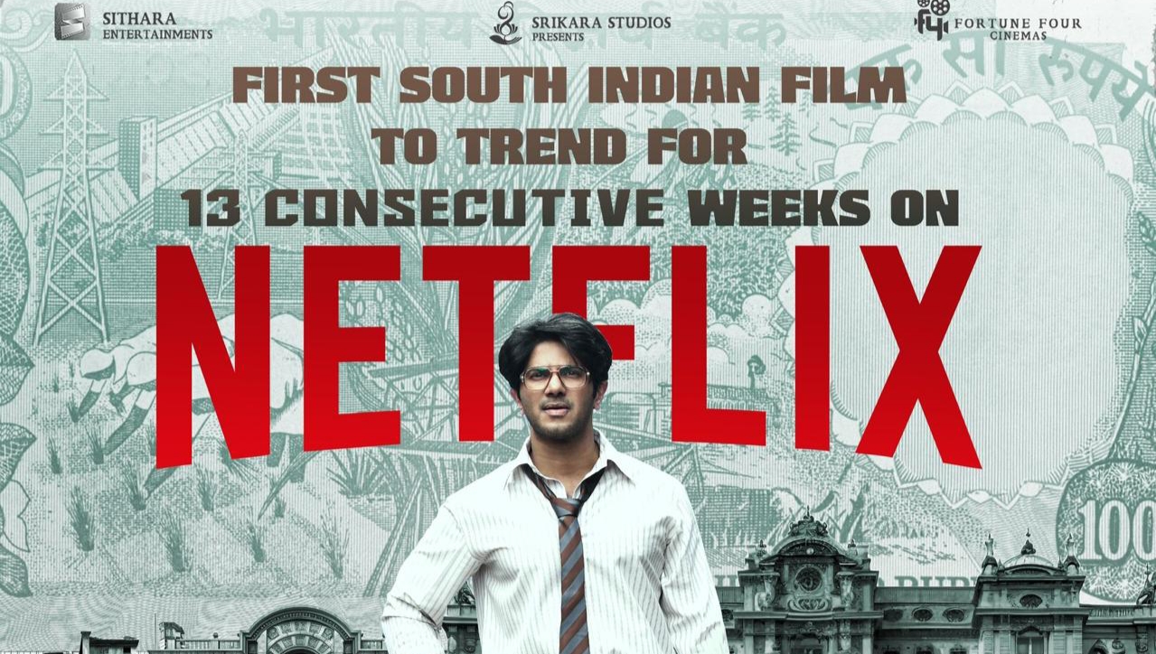 ദുൽഖർ സൽമാൻ നായകനായ പാൻ ഇന്ത്യൻ തെലുങ്ക് ചിത്രം ലക്കി ഭാസ്കർ മൂന്നു മാസങ്ങൾക്കു മുൻപാണ് ഒടിടി റിലീസായി നെറ്റ്ഫ്ലിക്സിൽ സ്ട്രീമിങ് ആരംഭിച്ചത്.അതിനു മുൻപ് തീയേറ്ററുകളിൽ ബ്ലോക്ക്ബസ്റ്റർ വിജയം നേടിയ ചിത്രം ആഗോള തലത്തിൽ 110 കോടിയോളം ഗ്രോസ് നേടി ദുൽഖറിന്റെ കരിയറിലെ തന്നെ ഏറ്റവും വലിയ വിജയമായി മാറിയിരുന്നു. ഇപ്പോഴിതാ ഒടിടി സ്ട്രീമിങ് ആരംഭിച്ചു 13 ആഴ്ചകൾ പിന്നിടുമ്പോഴും നെറ്റ്ഫ്ലിക്സിൽ ട്രെൻഡിങ് ലിസ്റ്റിൽ നിലനിൽക്കുകയാണ് ലക്കി ഭാസ്കർ. ഈ നേട്ടം സ്വന്തമാക്കുന്ന ആദ്യ തെന്നിന്ത്യൻ ചിത്രമായി ലക്കി ഭാസ്കർ മാറിയിരിക്കുകയാണ്. ഇന്ത്യൻ സിനിമയിൽ തരംഗം സൃഷ്ടിച്ച മറ്റൊരു തെന്നിന്ത്യൻ ചിത്രത്തിനും സ്വന്തമാക്കാനാവാത്ത റെക്കോർഡ് ആണ് ഈ ദുൽഖർ ചിത്രം സ്വന്തമാക്കിയിരിക്കുന്നത്. വെങ്കി അറ്റ്ലൂരി രചിച്ച് സംവിധാനം ചെയ്ത ചിത്രം ഒടിടിയിൽ റിലീസ് ചെയ്ത സമയം മുതൽ ആഗോള തലത്തിൽ ട്രെൻഡിങ് ആയിരുന്നു.
