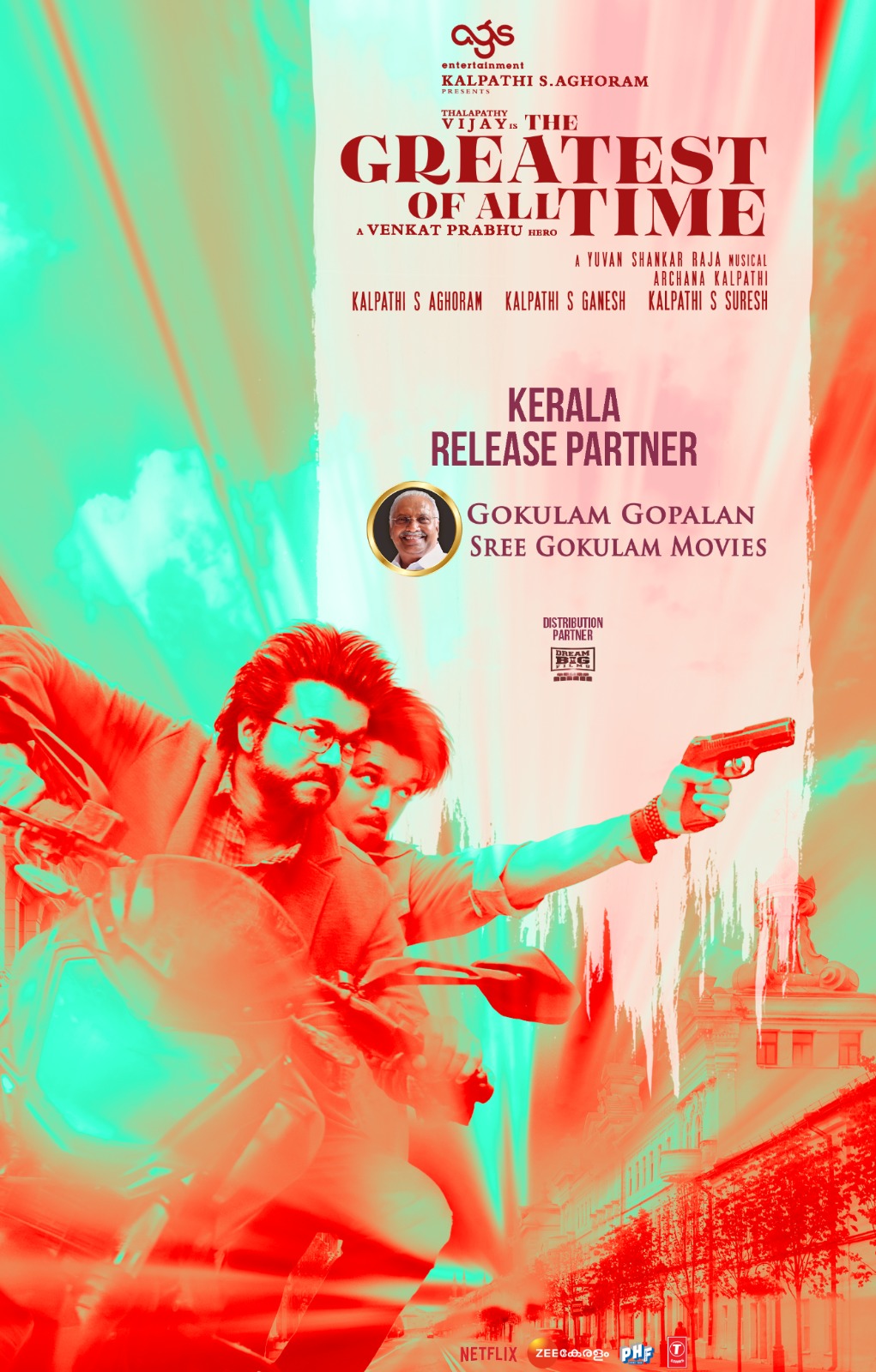 വെങ്കട് പ്രഭുവിന്റെ സംവിധാനത്തിൽ ദളപതി വിജയ് ഇരട്ട വേഷത്തിൽ പ്രത്യക്ഷപ്പെടുന്ന ‘ദി ഗ്രേറ്റസ്റ്റ് ഓഫ് ഓൾ ടെെം’ (ഗോട്ട്) ശ്രീ ഗോകുലം മൂവീസിന്റെ ബാനറിൽ ശ്രീ ഗോകുലം ഗോപാലൻ കേരളത്തിൽ വിതരണത്തിനെത്തിക്കുന്നു. ആക്ഷൻ പശ്ചാത്തലത്തിൽ ഒരുങ്ങുന്ന ഈ ചിത്രം എജിഎസ് എന്റര്ടെയിന്മെന്റിന്റെ ബാനറിൽ കൽപാത്തി എസ് അഘോരം, കൽപാത്തി എസ് ഗണേഷ്, കൽപാത്തി എസ് സുരേഷ് എന്നിവർ ചേർന്നാണ് നിർമ്മിക്കുന്നത്. യുവന് ശങ്കര് രാജയാണ് ചിത്രത്തിന് സംഗീതം ഒരുക്കുന്നത്.