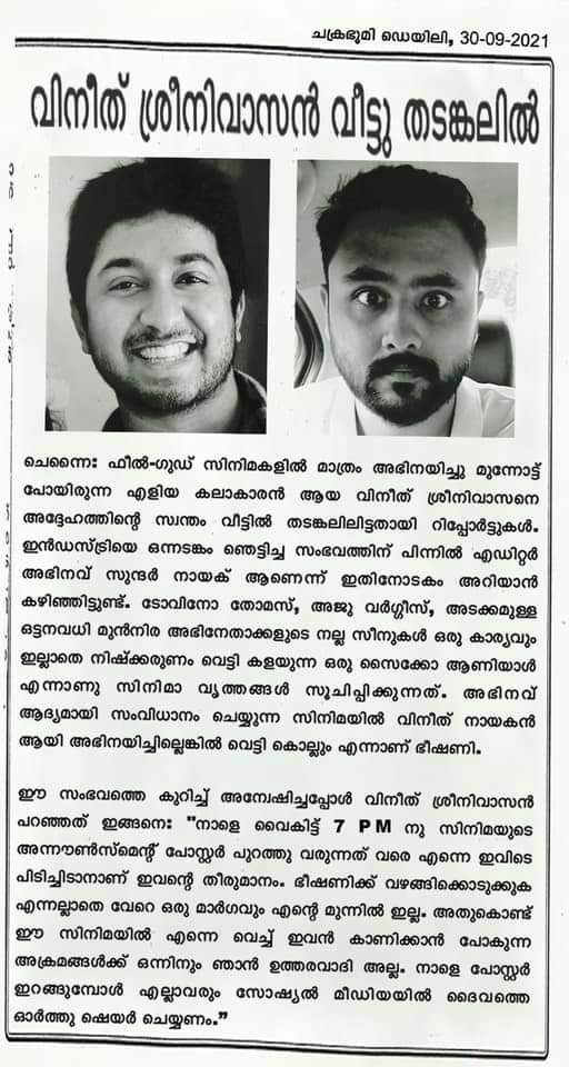അഭിനവ് ആദ്യമായി സംവിധാനം ചെയ്യുന്ന സിനിമയിൽ വിനീത് നായകനായി അഭിനയിക്കില്ല എങ്കിൽ വെ ട്ടി കൊ ല്ലും എന്നാണ് ഭീ ഷ ണി. ഈ സംഭവത്തെ കുറിച്ച് അന്വേഷിച്ചപ്പോൾ വിനീത് ശ്രീനിവാസൻ പറഞ്ഞത് ഇങ്ങനെ..