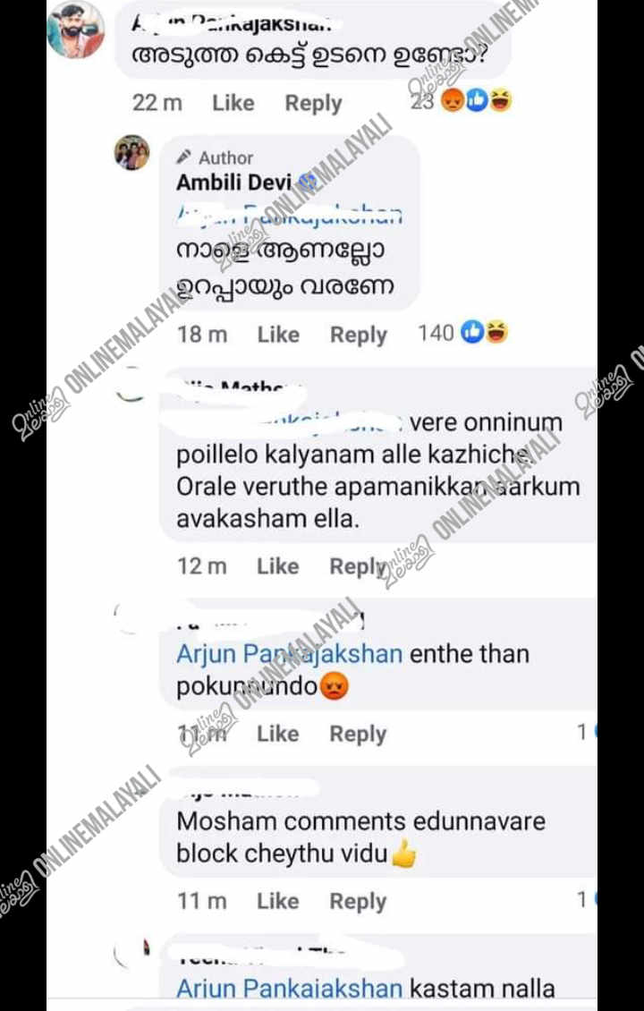 വിമർശനത്തിന് മികച്ച മറുപടി അമ്പിളിയും നൽകുകയുണ്ടായി. ‘നാളെ ആണല്ലോ, ഉറപ്പായും വരണേ’, എന്നാണ് അമ്പിളി നൽകിയ കലക്കൻ മറുപടി. എന്തുതന്നെ ആയാലും അമ്പിളിയുടെ കലക്കൻ മറുപടിയും ആരാധകരുടെ പൊങ്കാല കൂടി ആയതോടെ കമന്റും മുക്കി വിമർശകൻ തടി തപ്പി.