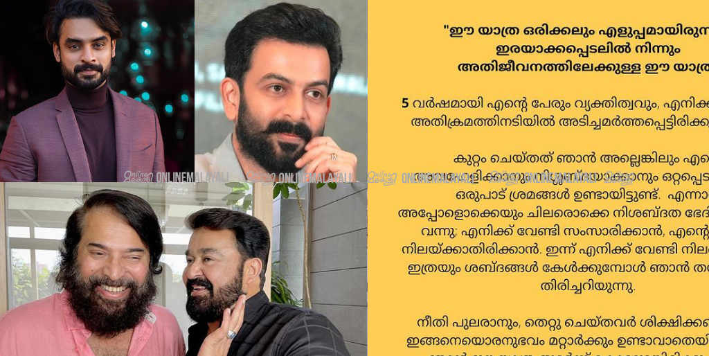 കഴിഞ്ഞ അഞ്ച് വർഷമായി നീതിക്ക് വേണ്ടി പോരാടുന്ന മലയാളത്തിന്റെ പ്രിയ നടിക്ക് പിന്തുണ പരസ്യമായി അറിയിച്ച് നടൻ പൃഥ്വിരാജ് സുകുമാരൻ , ടോവിനോ തോമസ് എന്നിവർ.