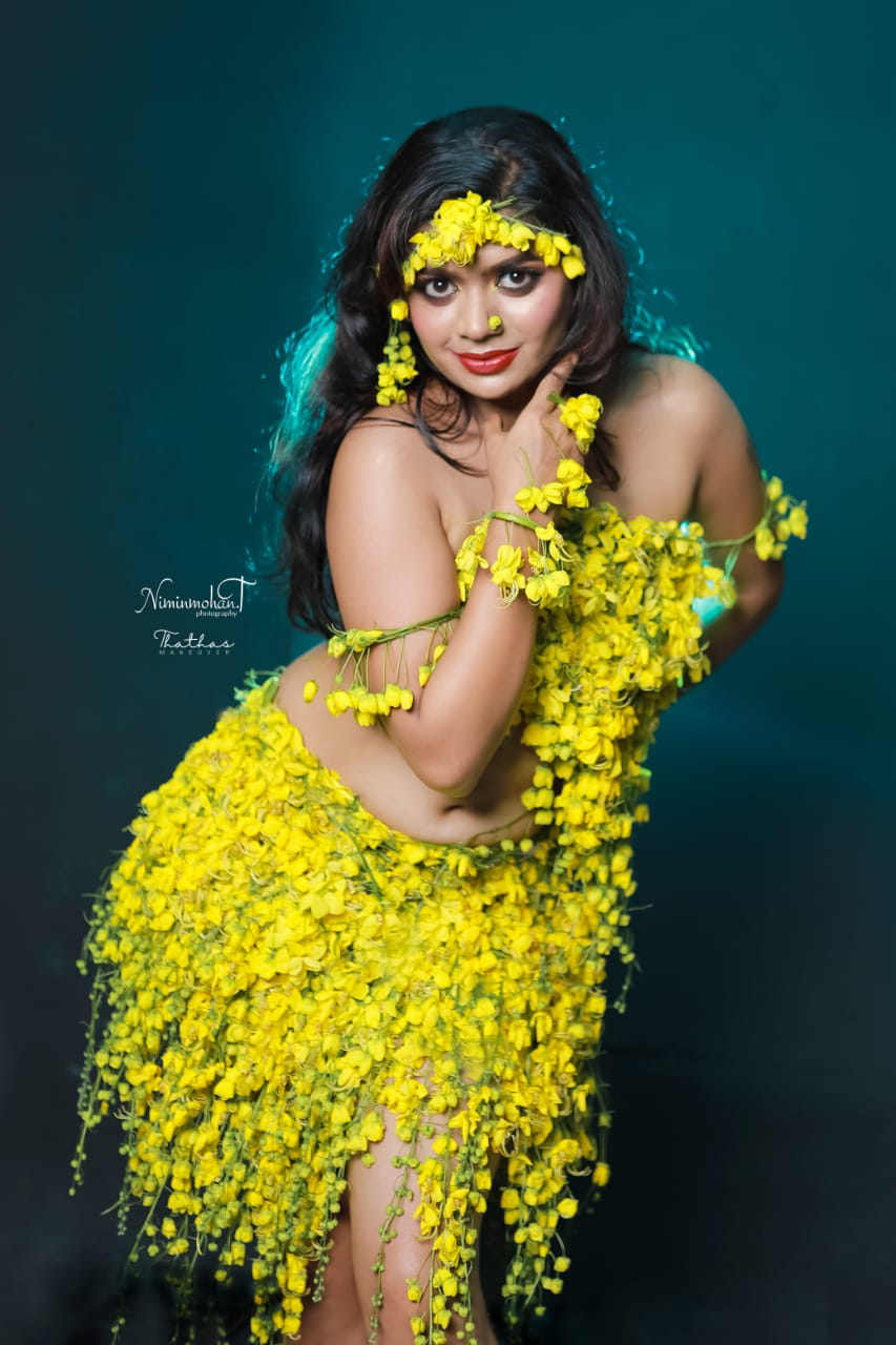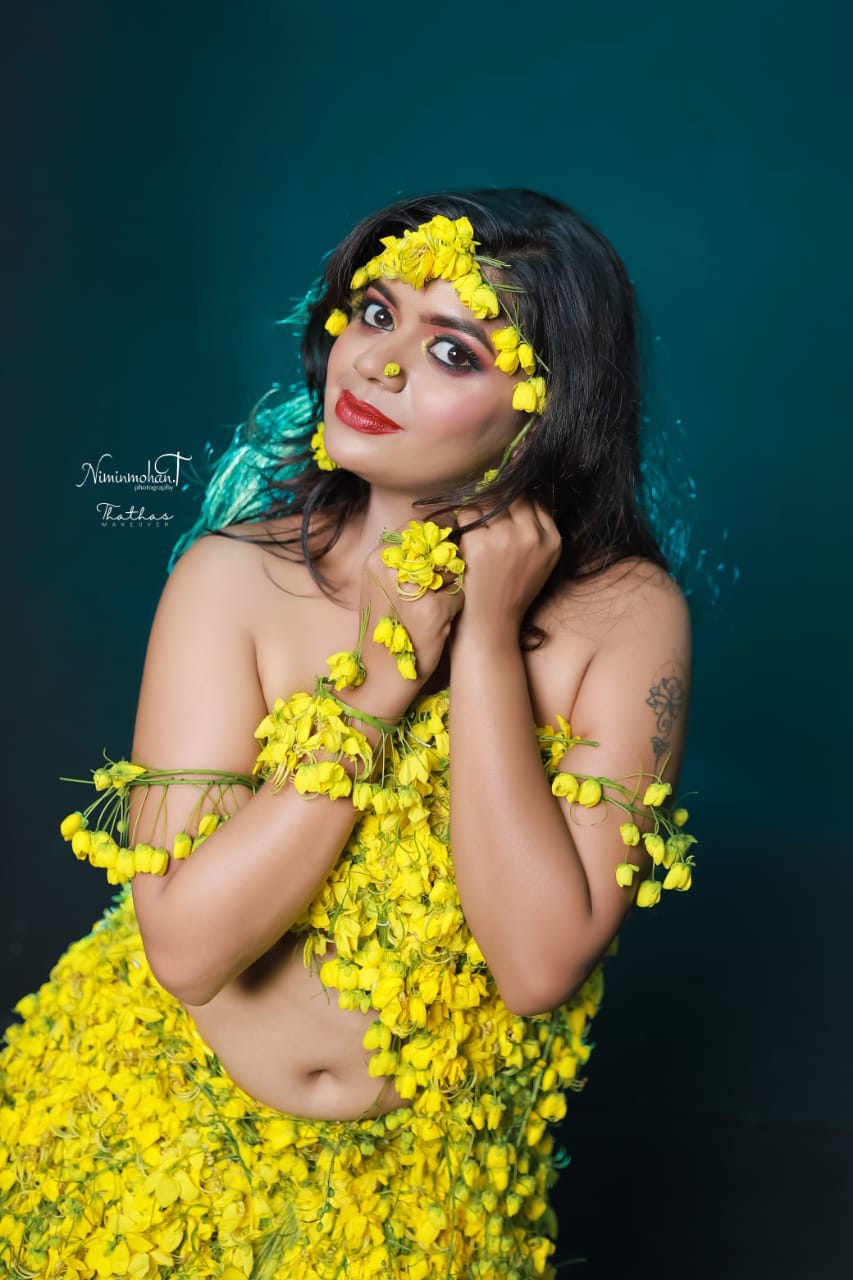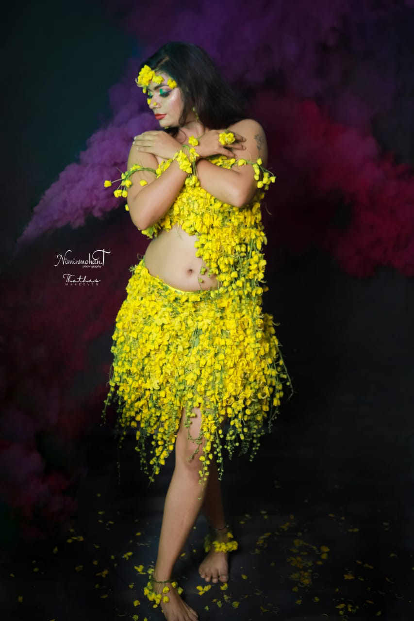 അത്തരത്തിലുള്ള വിഷുക്കണിയിൽ ഏറ്റവും കൂടുതൽ പ്രാധാന്യമുള്ള കണിക്കൊന്നകൾ ആണ് സ്വന്തം ശരീരത്തിൽ വസ്ത്രമാക്കി, അതിന്റെ ഫോട്ടോഷൂട്ടുകൾ നടത്തി മോഡലുകൾ ശ്രദ്ധ നേടുന്നത്. ചെടിയിൽ നിന്നും കൊഴിഞ്ഞു വീഴുന്ന കൊന്ന പൂക്കൾ കാലുകൾ കൊണ്ട് ചവിട്ടുണ്ടെങ്കിൽ പിന്നെ എന്തുകൊണ്ട് അതുകൊണ്ട് വസ്ത്രം മറച്ചുക്കൂടാ എന്നാണ് സീതുവിന്റെ ഭാഷ്യം.