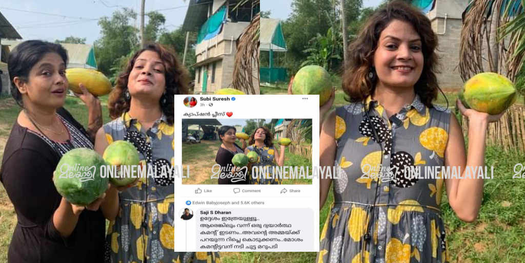 എന്നാൽ ഇത്തരത്തിലുള്ള ചില കമെന്റുകൾ ചിലർ ചോദിച്ചു വാങ്ങുന്നത് ആണെന്നുള്ള ആക്ഷേപവുമുണ്ട്. ഇപ്പോൾ നടി മഞ്ജു പിള്ളയുമായി നാല് പപ്പായയും പിടിച്ചു നിൽക്കുന്ന ചിത്രം ആണ് സുബി സുരേഷ് പങ്കു വെച്ചത്.