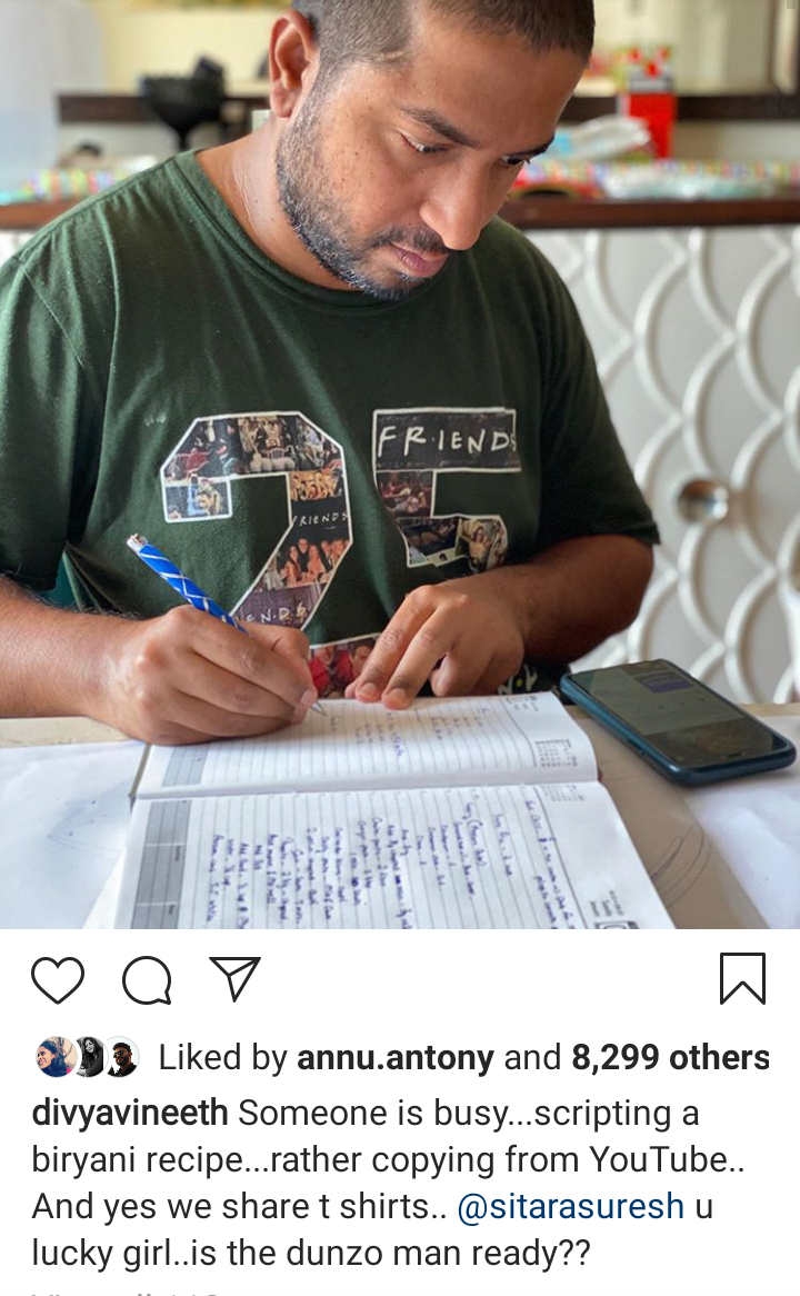 അതിൽ തലക്കെട്ടായി താരം നൽകിയിരിക്കുന്നത് ഇങ്ങനെ ആണ്. എഴുതുന്നത് കണ്ടു തെറ്റിദ്ധരിക്കേണ്ട പുതിയ ചിത്രത്തിന്റെ തിരക്കഥ ഒന്നും അല്ല. യൂട്യൂബിൽ നിന്നും ബിരിയാണി റെസിപ്പീ കോപ്പി അടിക്കുന്നത് ആണ്. എന്നാൽ വിനീതിന്റെ മുഖഭാവം അപാരം എന്നാണ് ആരാധകർ കമന്റ് ചെയ്തേക്കുന്നത്. ഈ അടുത്താണ് വിനീതിന്റെ രണ്ടാമത്തെ കുഞ്ഞു പിറന്നത്.