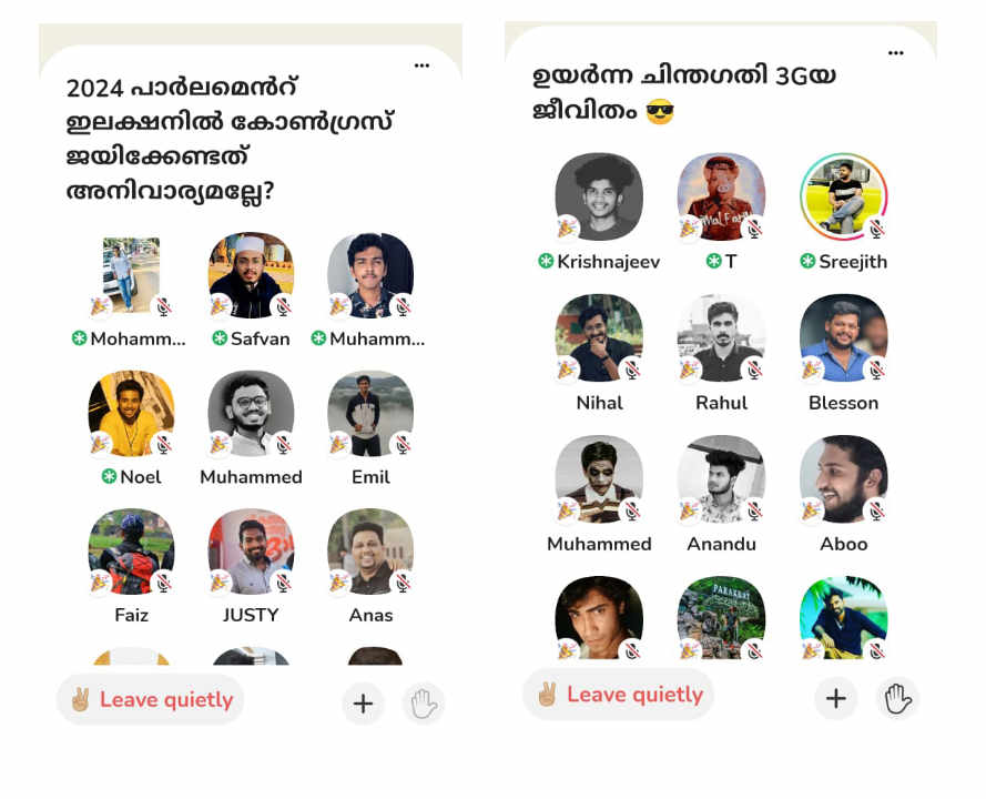 അതിനു ശേഷം പ്രധാന സ്ക്രീനിൽ നിങ്ങൾക്ക് ആ വിഷയത്തിൽ നിലവിൽ നടക്കുന്ന ചർച്ചകൾ കാണാൻ സാധിക്കും. നിങ്ങൾ ഫോള്ളോ ചെയ്യുന്ന ആളുകൾ പങ്കെടുക്കുന്നതോ നടത്തുന്നതോ ആയ ചർച്ചകളും കാണാവുന്നതാണ്. കൂടുതൽ ചർച്ചകൾ ലിസ്റ്റിൽ കാണാൻ താഴെയുള്ള ‘എക്സ്പ്ലോർ’ എന്നതിൽ ക്ലിക്ക് ചെയ്താൽ മതി. നിങ്ങൾക്ക് ലഭിക്കുന്ന ചാറ്റ് റൂമുകളിൽ നിന്ന് നിങ്ങൾക്ക് ഇഷ്ടമുള്ളതിൽ കയറാനും എപ്പോൾ വേണമെങ്കിൽ ഇറങ്ങി പോരാനും സാധിക്കും.
