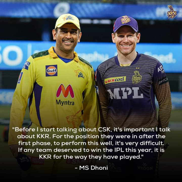 ചെന്നൈ സൂപ്പർ കിങ്സ് വിജയത്തെ കുറിച്ച് പറയുന്നതിന് മുന്നേ കൊൽക്കത്തയെ കുറിച്ച് രണ്ടു വാക്കുകൾ പറയാൻ ഞാൻ ആഗ്രഹിക്കുന്നു. ഈ ഐ പി എൽ ജയിക്കാൻ ഏറ്റവും കൂടുതൽ അർഹർ ആയിട്ടുള്ളത് കൊൽക്കത്ത തന്നെയാണ്.