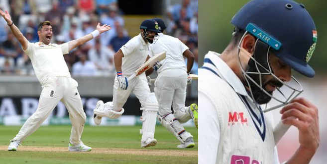ആൻഡേഴ്സൺ ആണ് വിക്കറ്റ് വീഴ്ത്തിയത്. ആൻഡേഴ്സണും കൊഹ്ലിയും തമ്മിൽ ചില കണക്കുകൾ ഉണ്ട്. 2014 നു ശേഷം ആദ്യമായി ആണ് ആണ്ടെഴ്സന് മുന്നിൽ കോഹ്ലി ഔട്ട് ആകുന്നത്. 2014 ൽ നടന്ന പരമ്പരയിൽ അഞ്ചു തവണ ആയിരുന്നു ആൻഡേഴ്സൺ കോഹ്ലിയെ പുറത്താക്കിയത്.